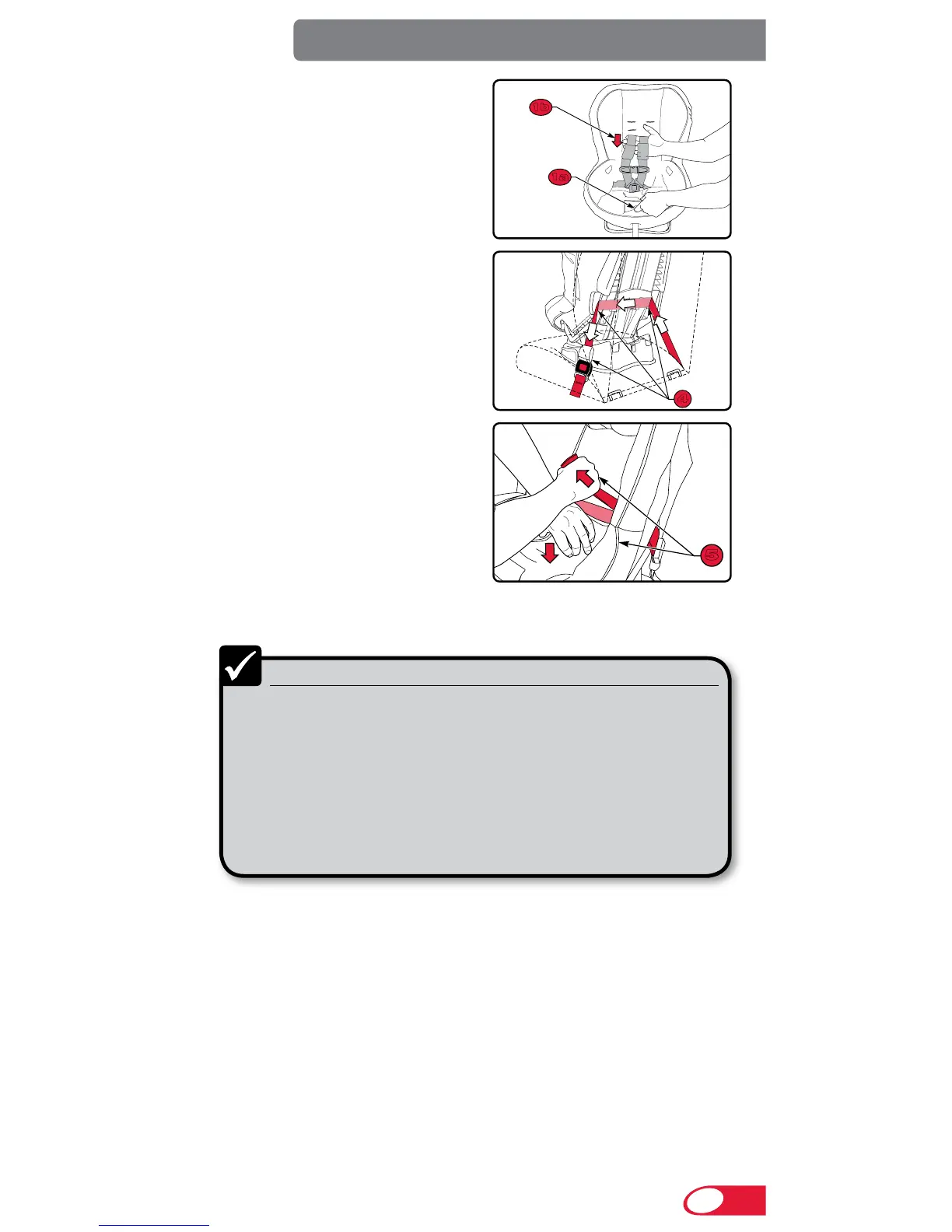 more than 2.5 cm (1 in.) at the belt path. If the child seat is not secure,