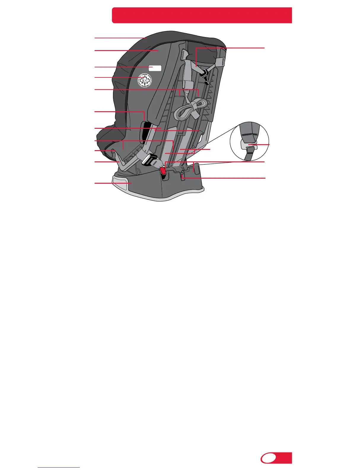 17 Levier d’ajustement du harnais (sous la housse)