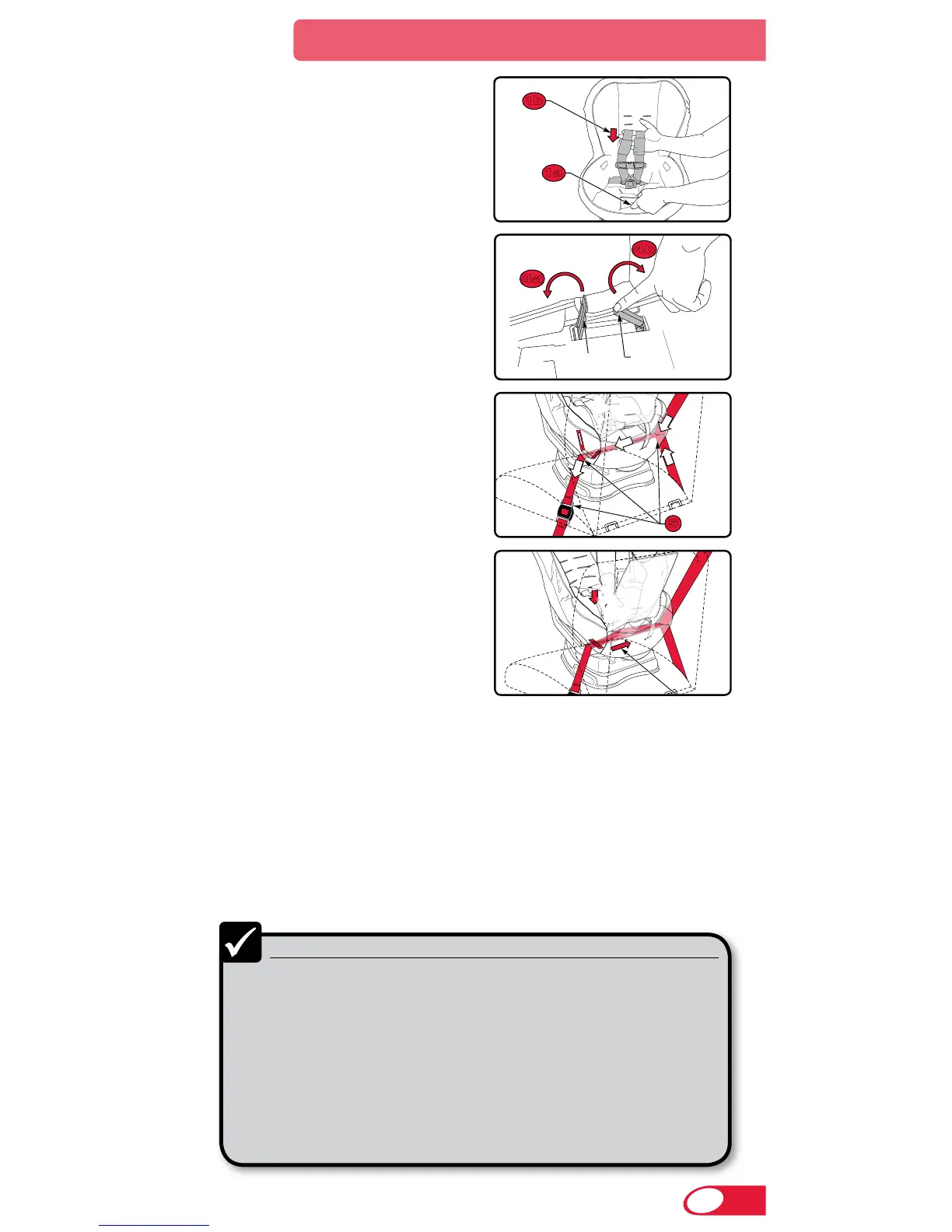 9 Assurez-vous que la ceinture de sécurité du véhicule est ancrée solidement.