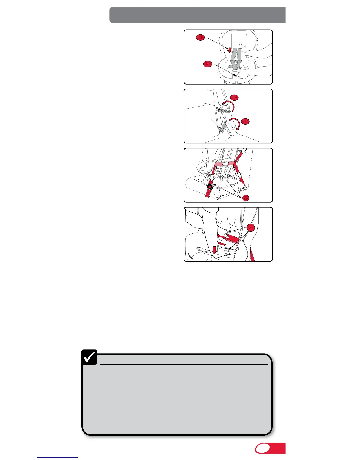 9 Assurez-vous que la ceinture de sécurité du véhicule est bien ancrée.