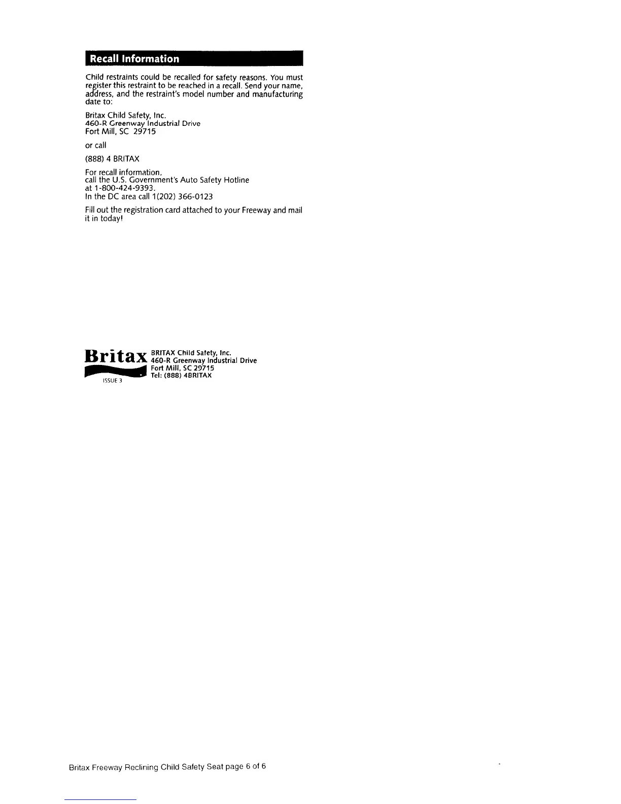 Entax Freeway Reclining Child Safety Seat page 6 of 6
