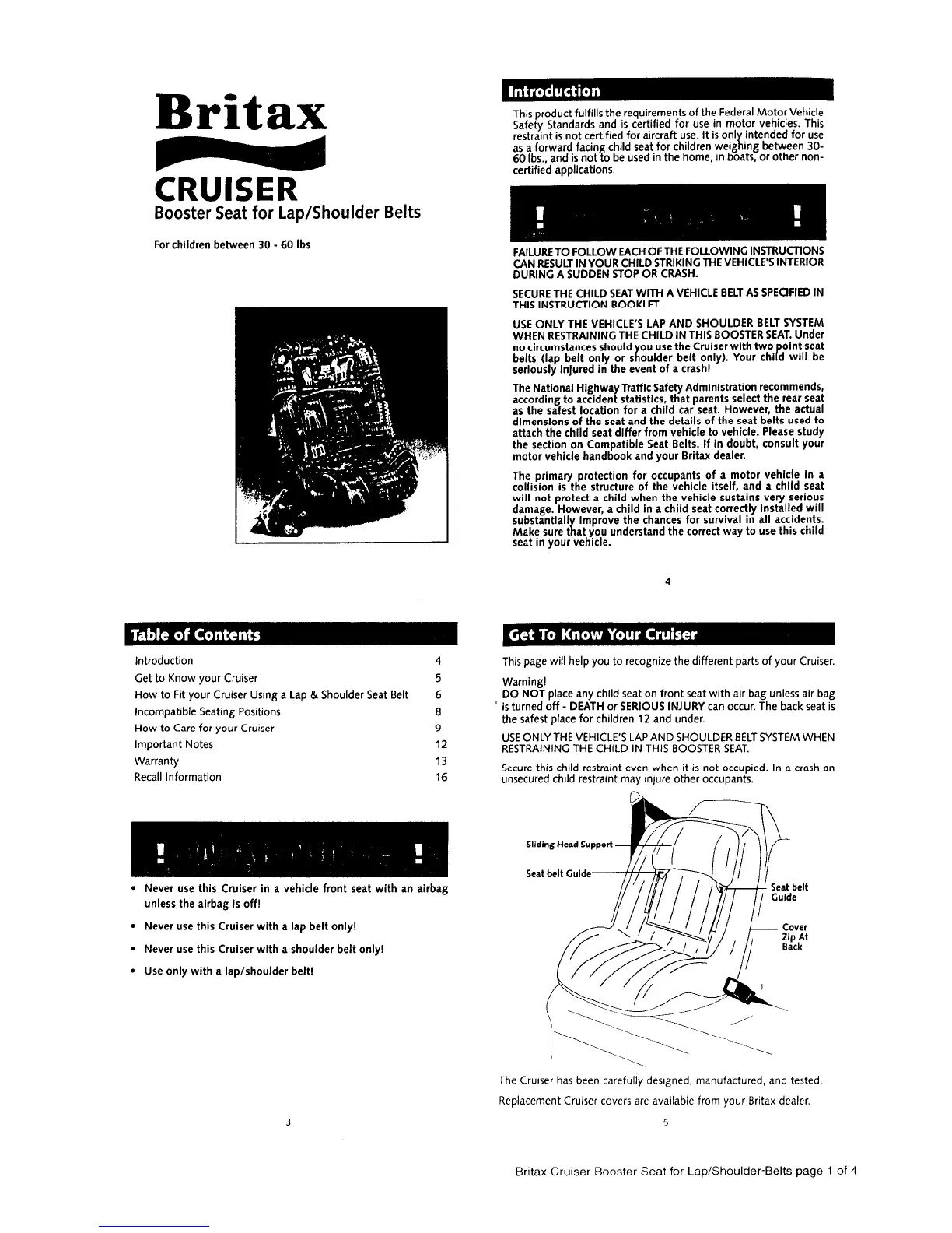 Britax Cruiser Booster Seat for Lap/Shoulder-Belts page 1 of 4