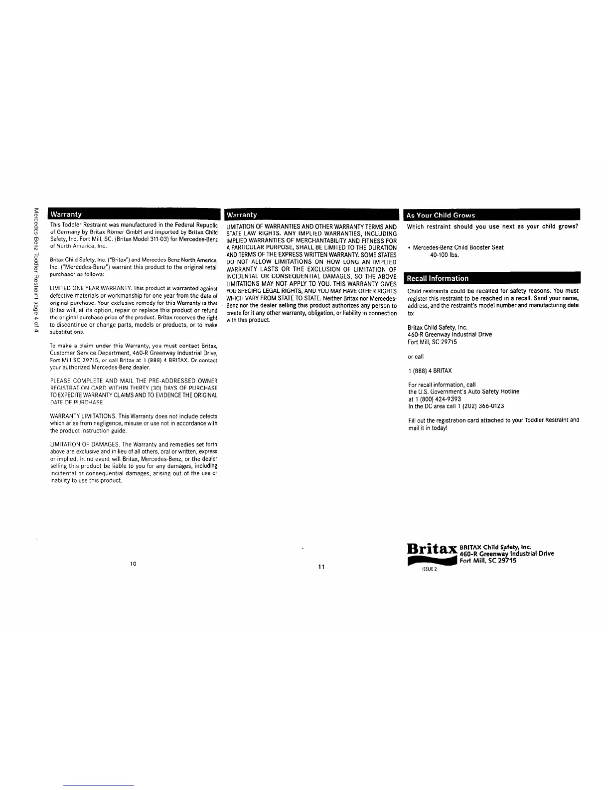Safety, Inc. Fort Mill, SC. (Britax Model 31143) for Mercedes-Benz