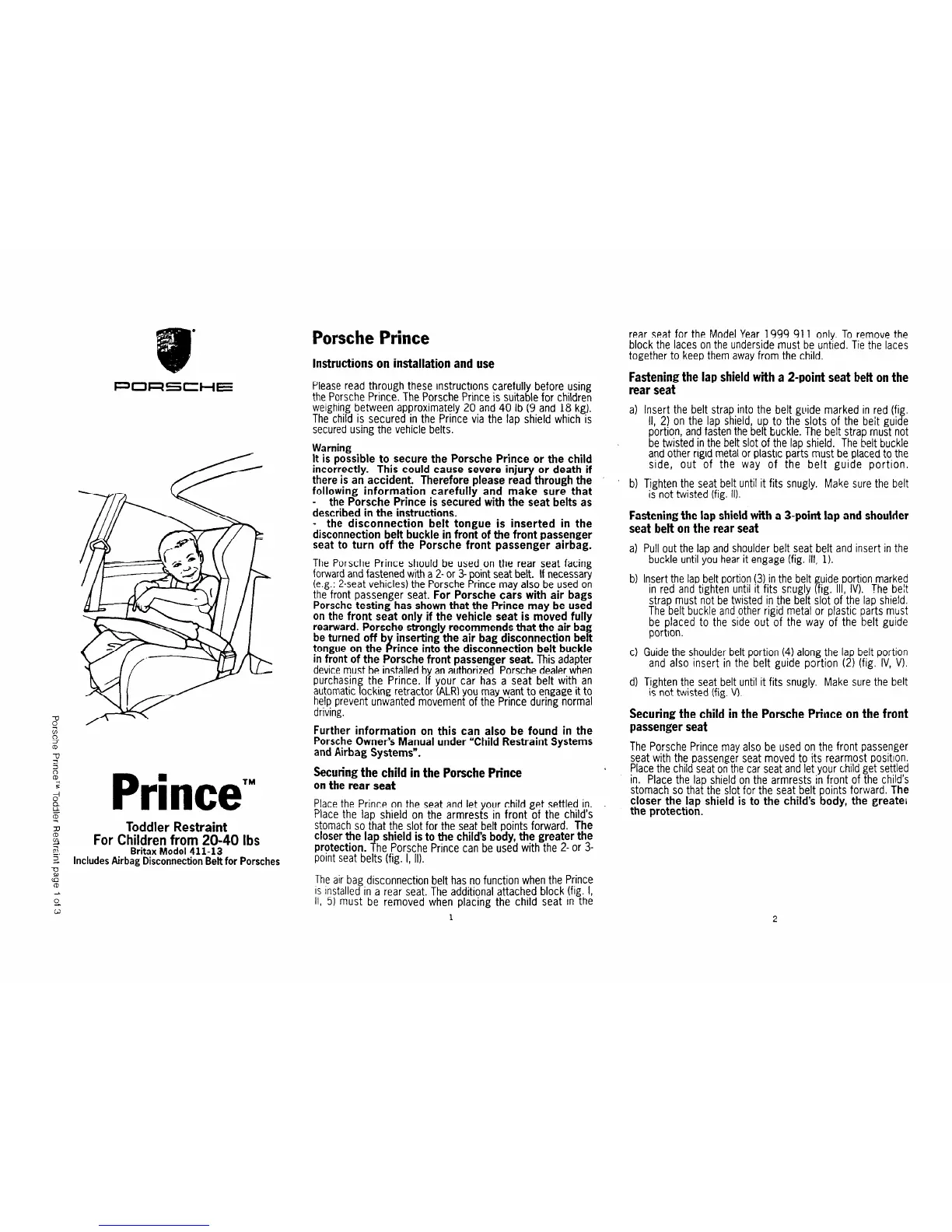 The Porsche Prince should be used on the rear seat facing