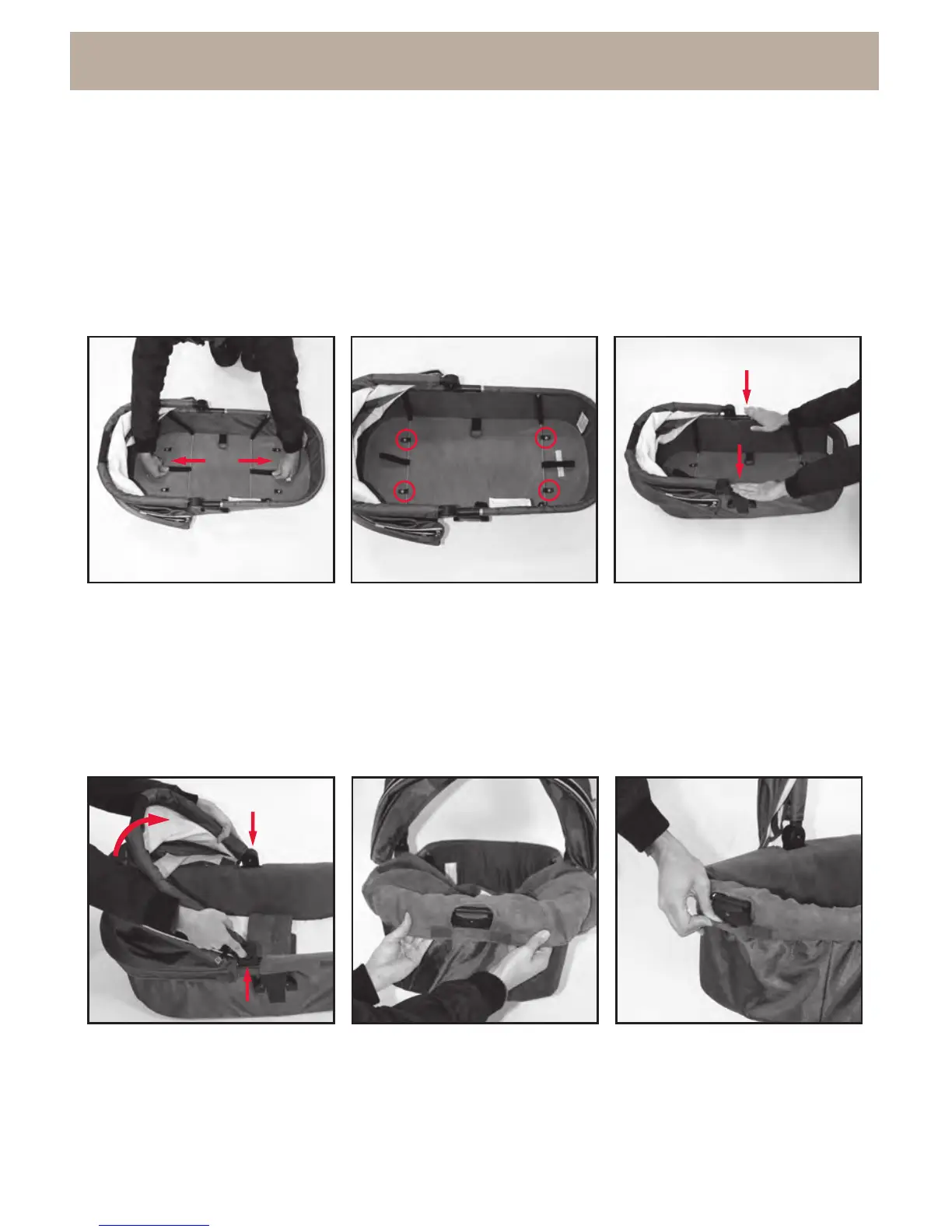 WARNING: Remove Stroller seat or Infant Carrier from the frame before fitting Bassinet.