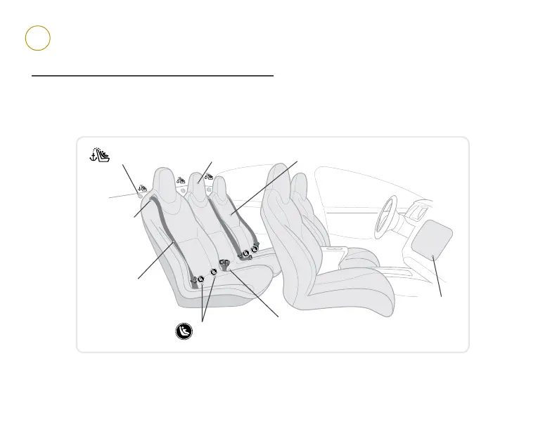 las ubicaciones de los anclajes inferiores y las posiciones de asiento