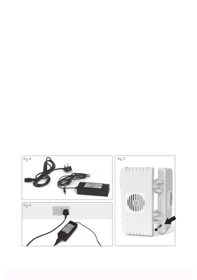 Packen Sie die Stromeinheit und das Kabel aus (siehe Abb. 4). Stecken Sie den
