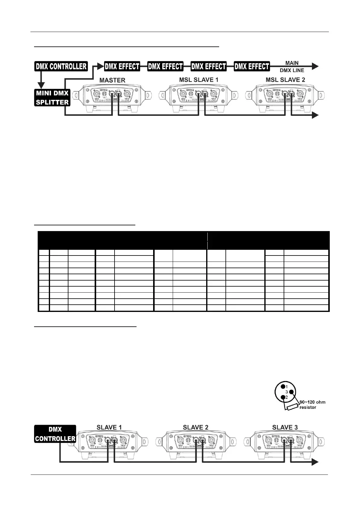 To assure proper operation you need an optional “Mini DMX-SPLITTER” to isolate the master/slave line