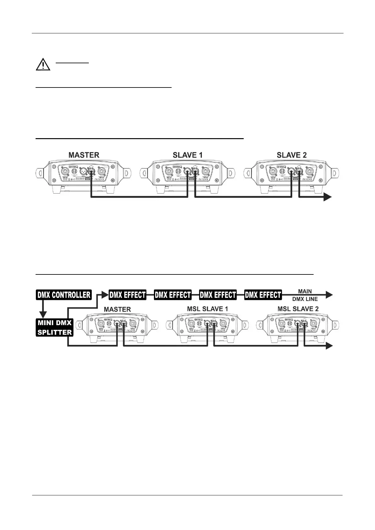 pour isoler la ligne maître/esclave de la ligne principale DMX, voir dessin.