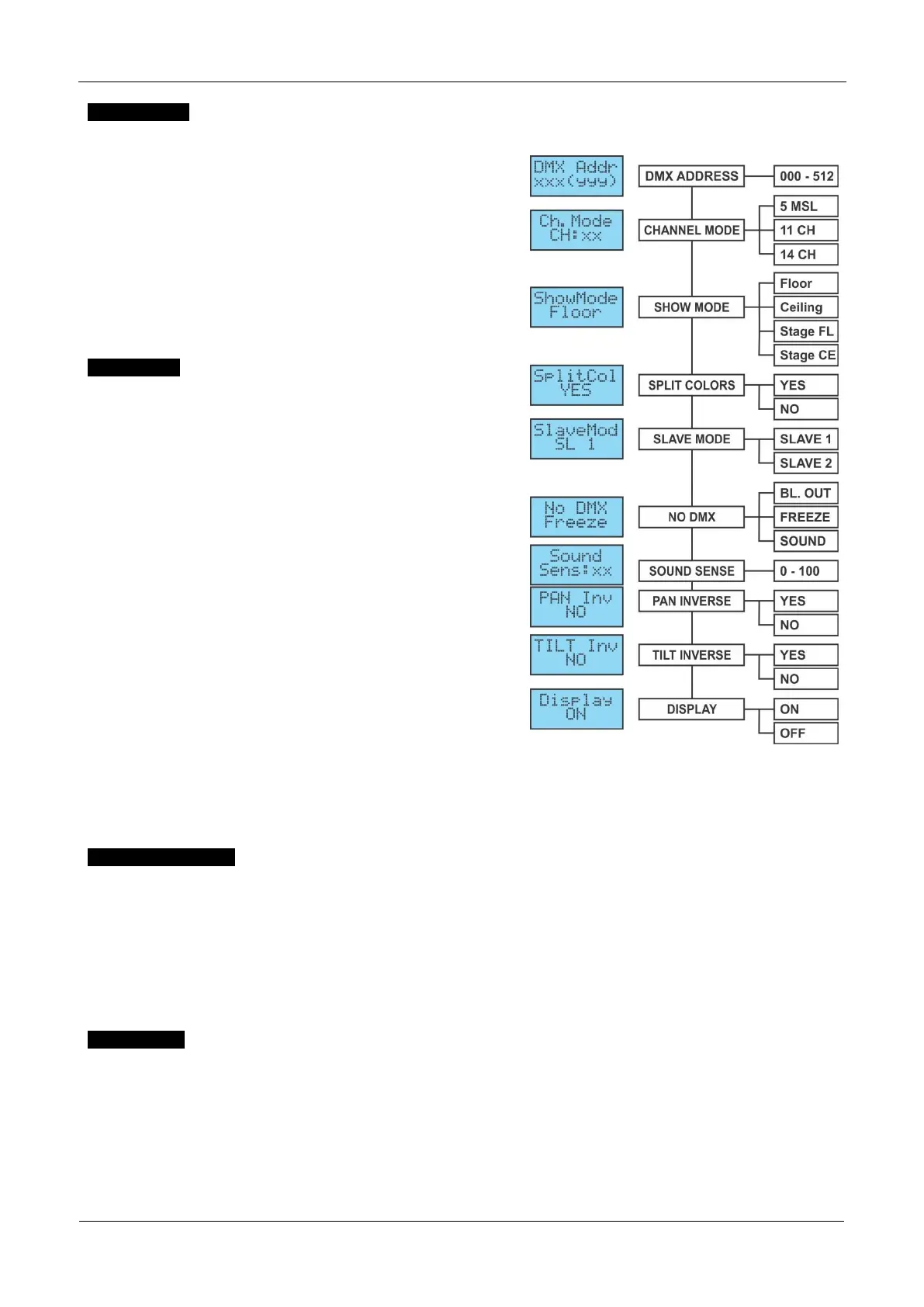 Gebruik de toetsen ▼/▲ om de modus [SLAVE1] (normaal) of [SLAVE2] (lichtshow 2) te selecteren.