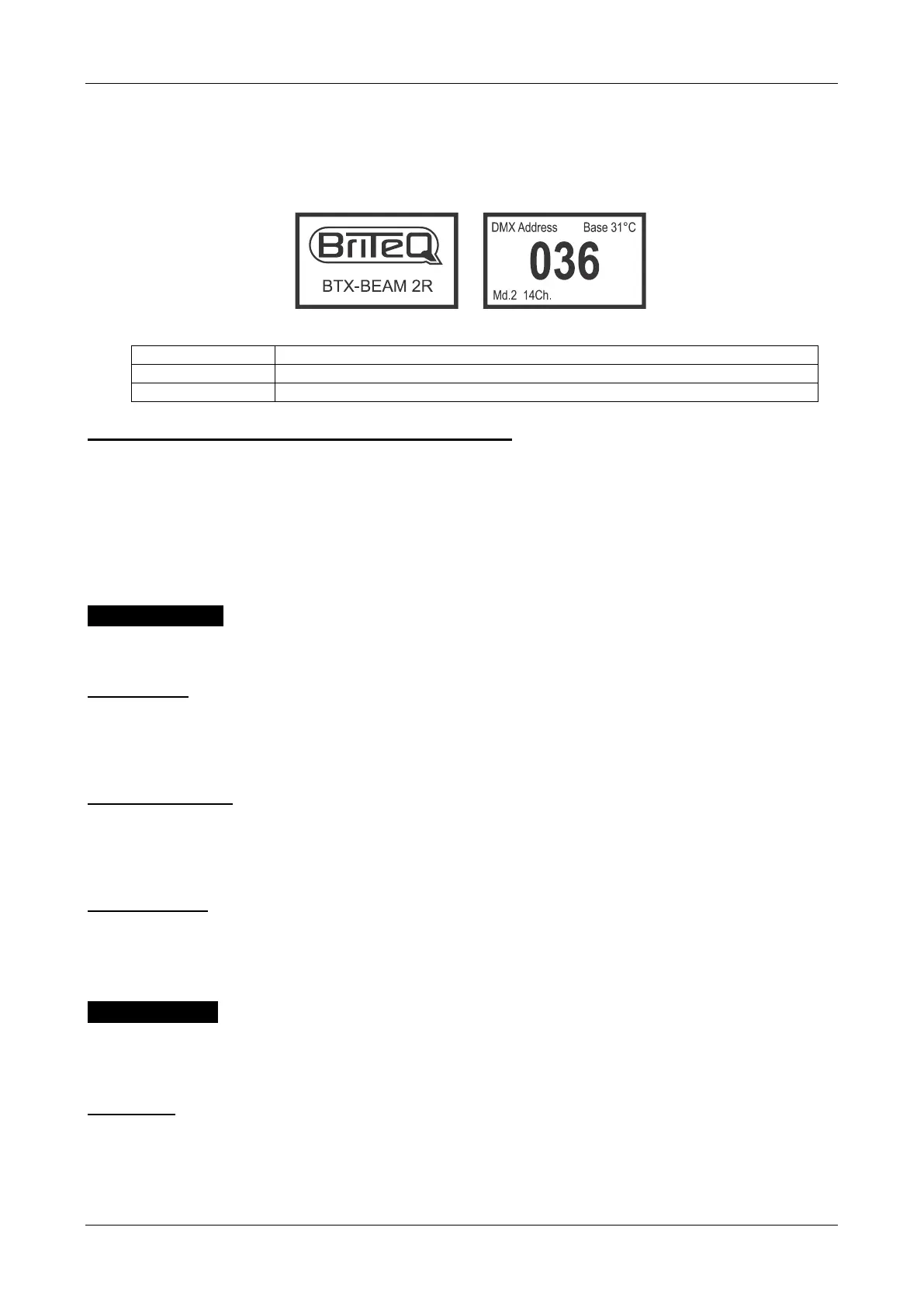 informations sur l'erreur. Après cela, l’unité sera prête pour recevoir le signal DMX et l'affichage standard