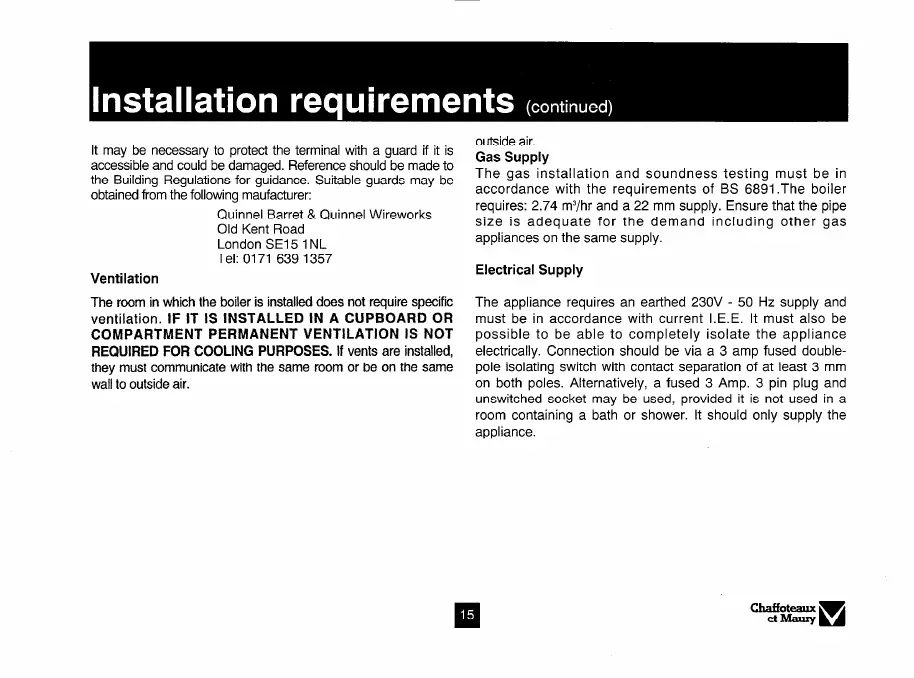 accordance with the requirements of BS 6891.The boiler