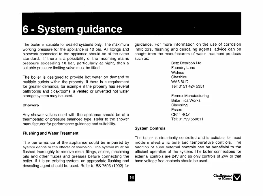 descaling agent should be used. Refer to BS 7593 (1992) for