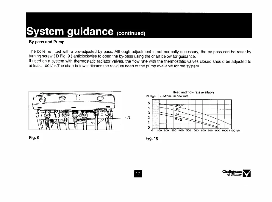 turning screw ( D Fig. 9 ) anticlockwise to open the by-pass using the chart below for guidance.