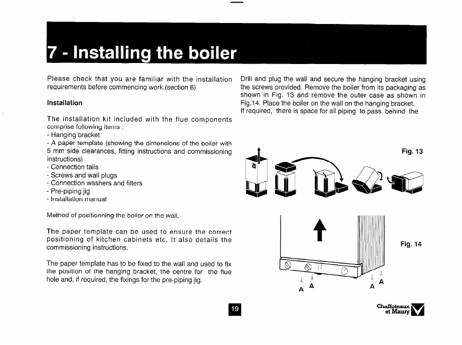 Method of positionning the boiler on the wall.