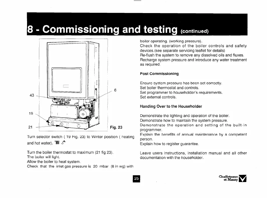 Turn the boiler thermostat to maximum (21 fig 23).
