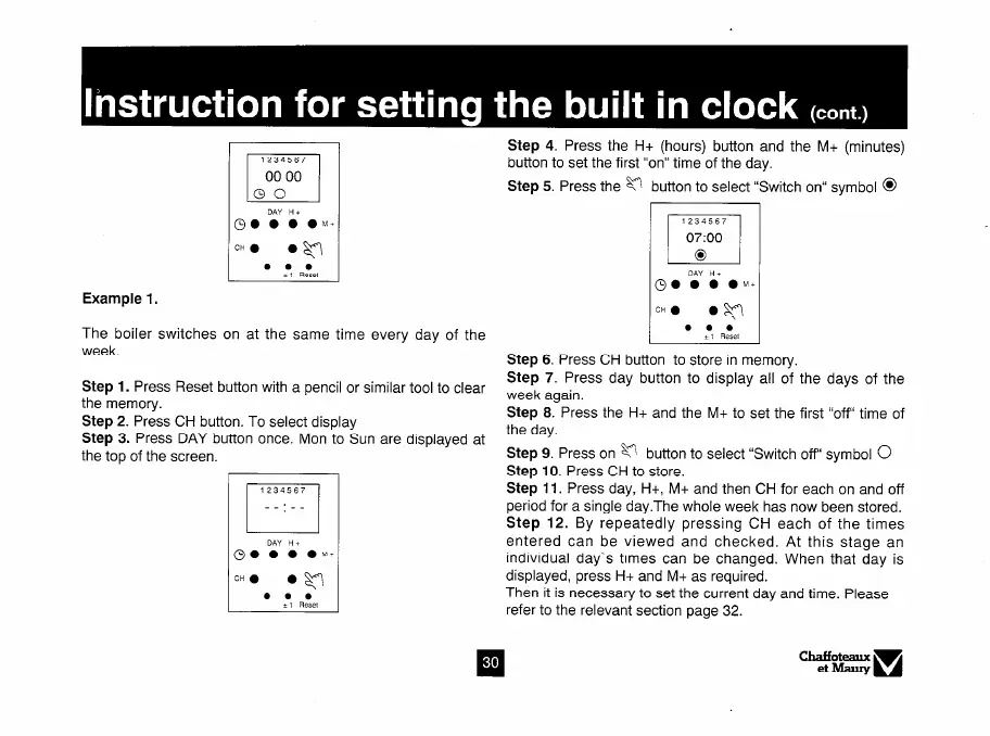 Step 11. Press day, H+, M+ and then CH for each on and off