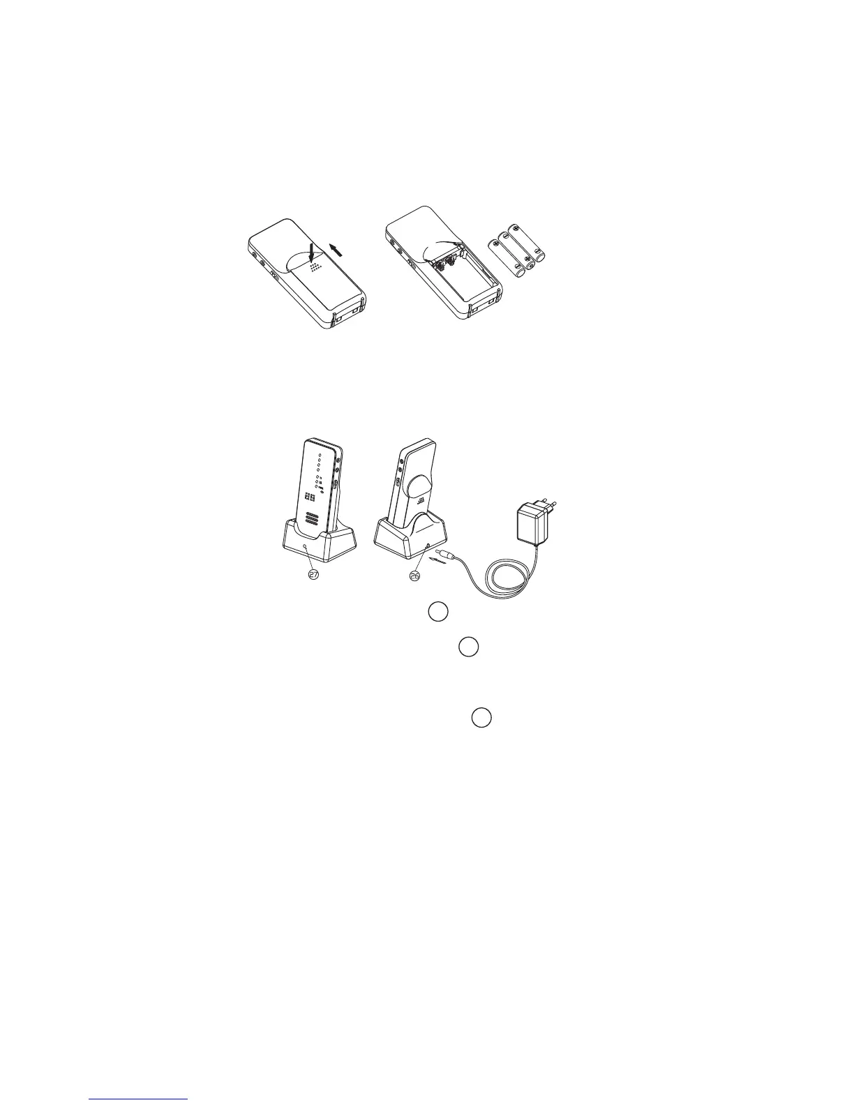 Įdėkite į komplektą įeinančius Ni-mH įkraunamuosius maitinimo elementus. Įsitikinkite, kad