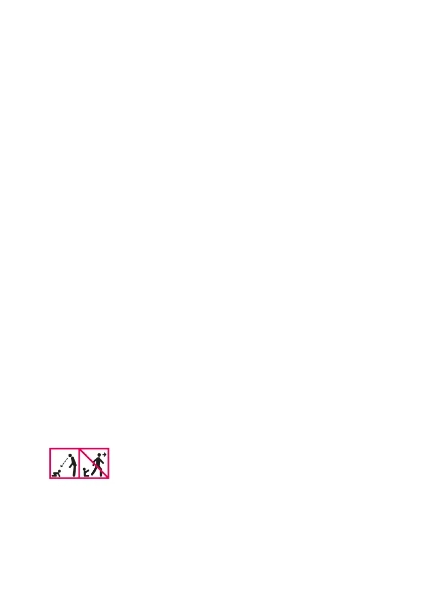 • Nigdy nie podnoś krzesełka ani reguluj wysokości, jeżeli dziecko siedzi w krzesełku.