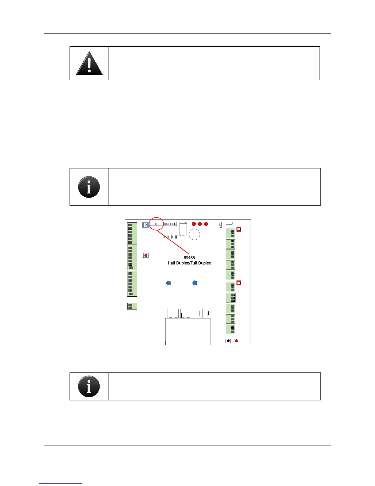 7. If using OSDP RS-485 readers, wire the reader terminal to the RS-485 terminal on the