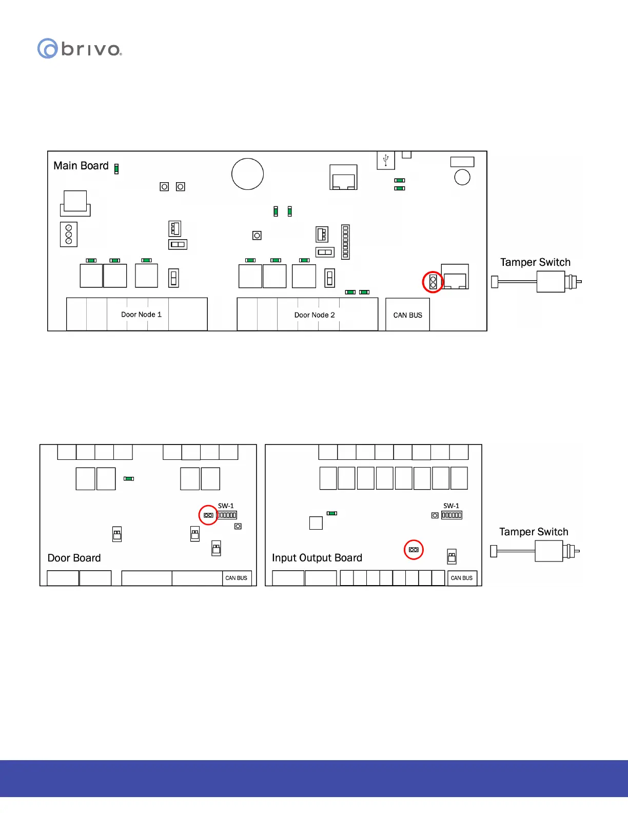 2. Connect the tamper switch to one expansion board (DOOR BOARD or INPUT OUTPUT BOARD) in each