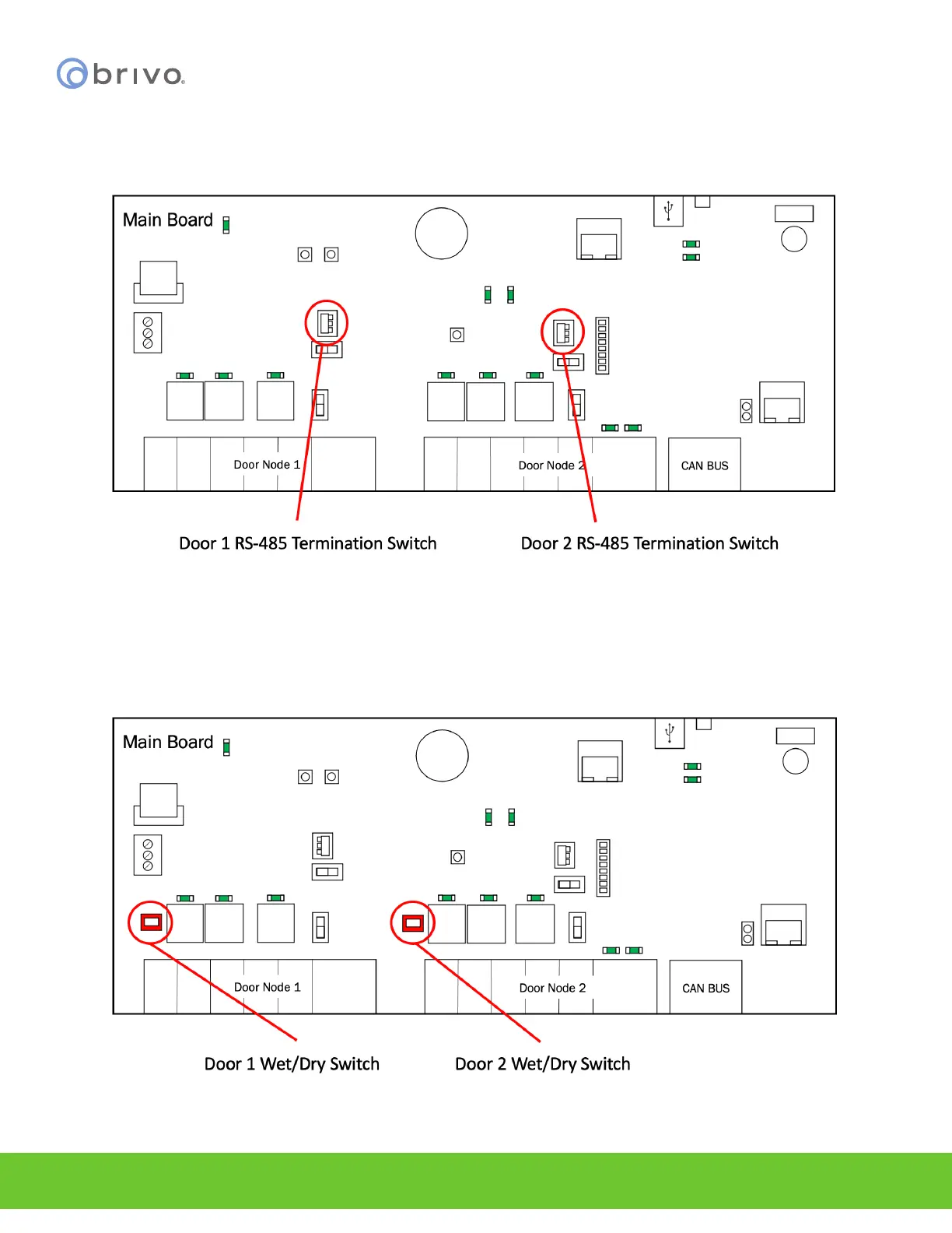 NOTE: RS-485 bus requires termination. Door 1 RS-485 Term is the RS-485 Door 1 bus termination switch and