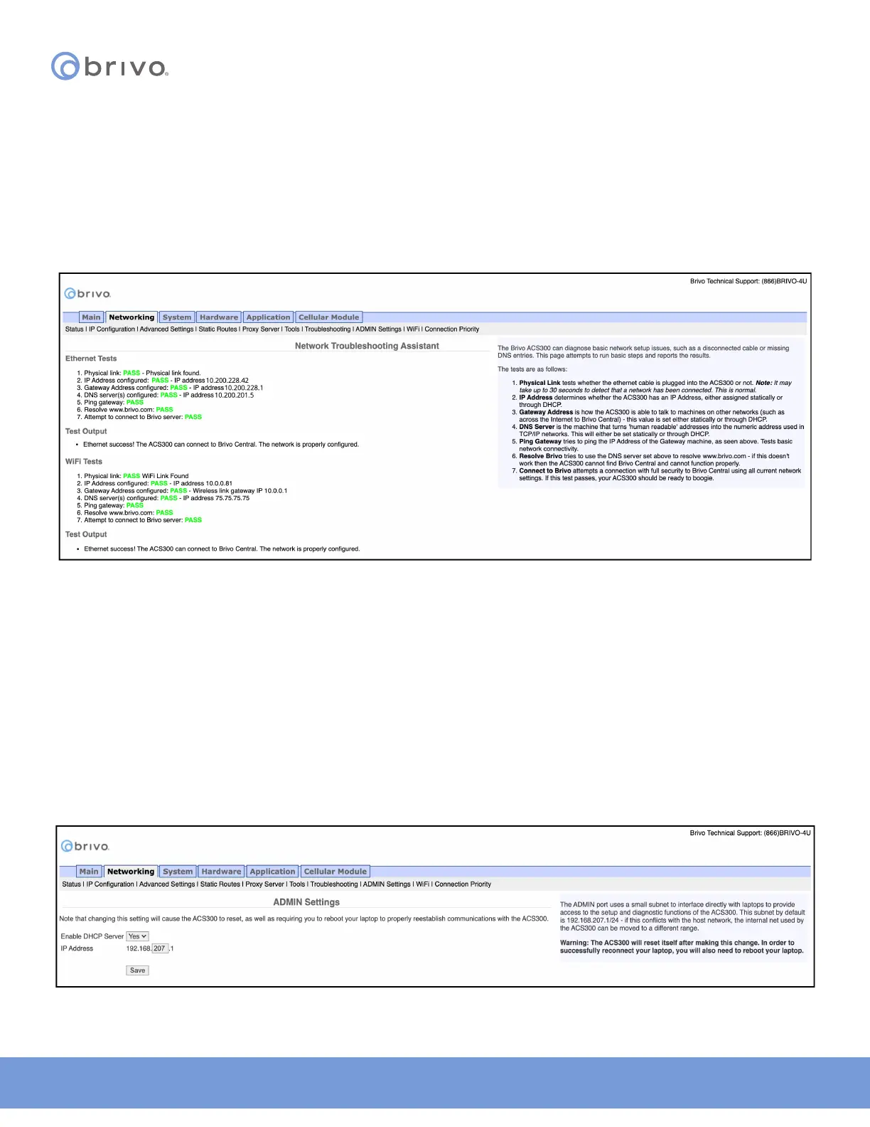 Network Troubleshooting assistant to determine if the Brivo control panel is connected to the local network and