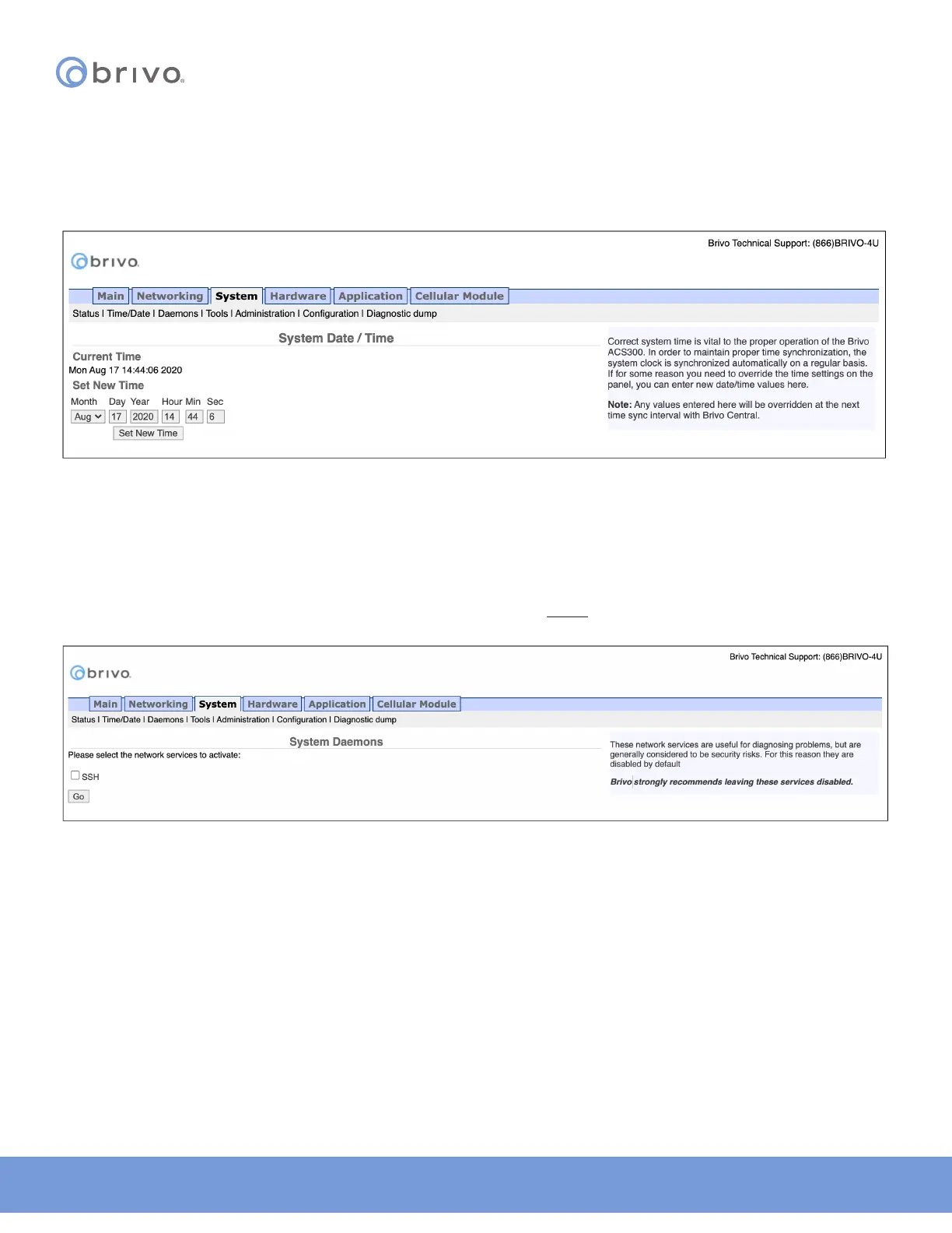 or Brivo Onsite Server. Setting the date and time manually should seldom be required, if ever.