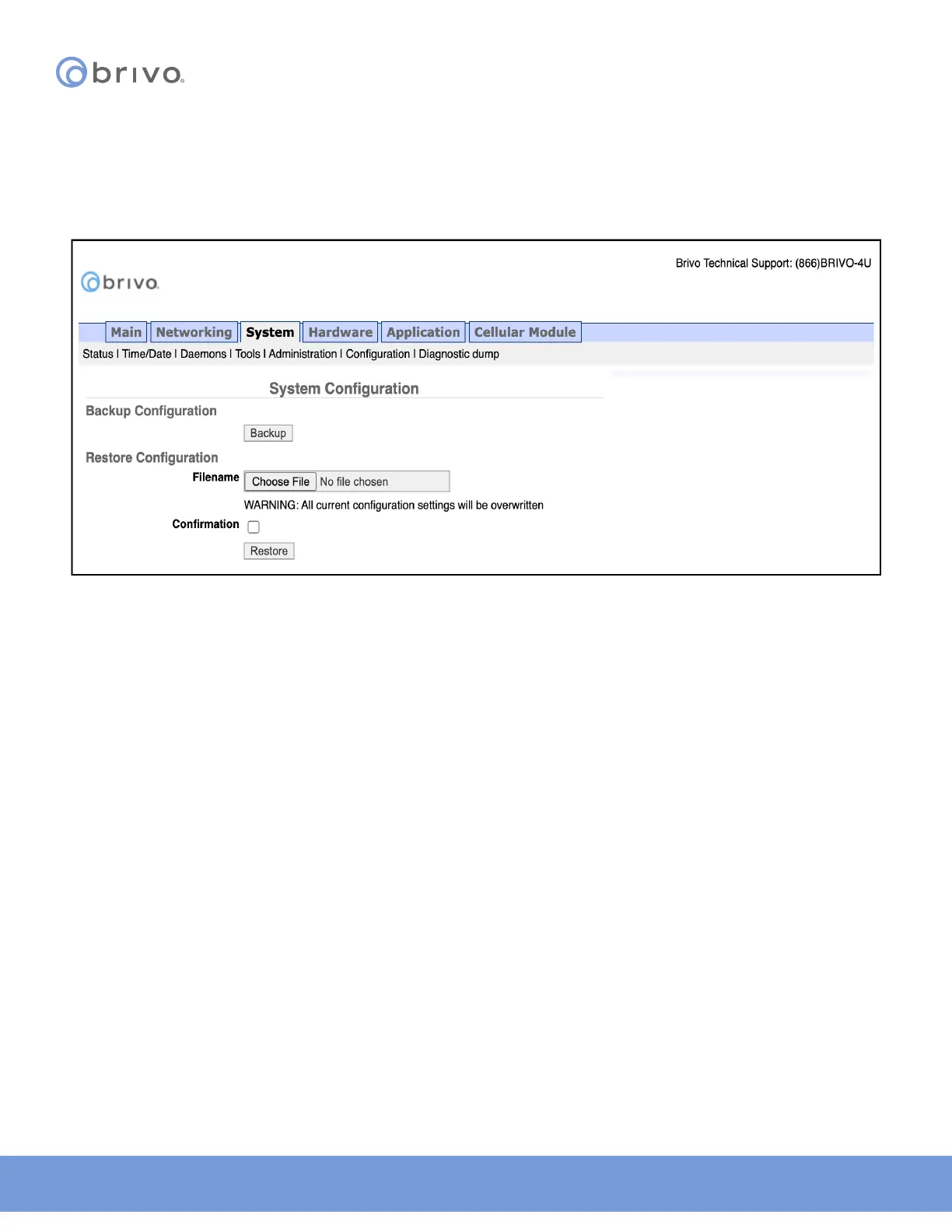 NOTE: It is generally recommended that the Diagnostic Dump functionality be used only at the request of Brivo