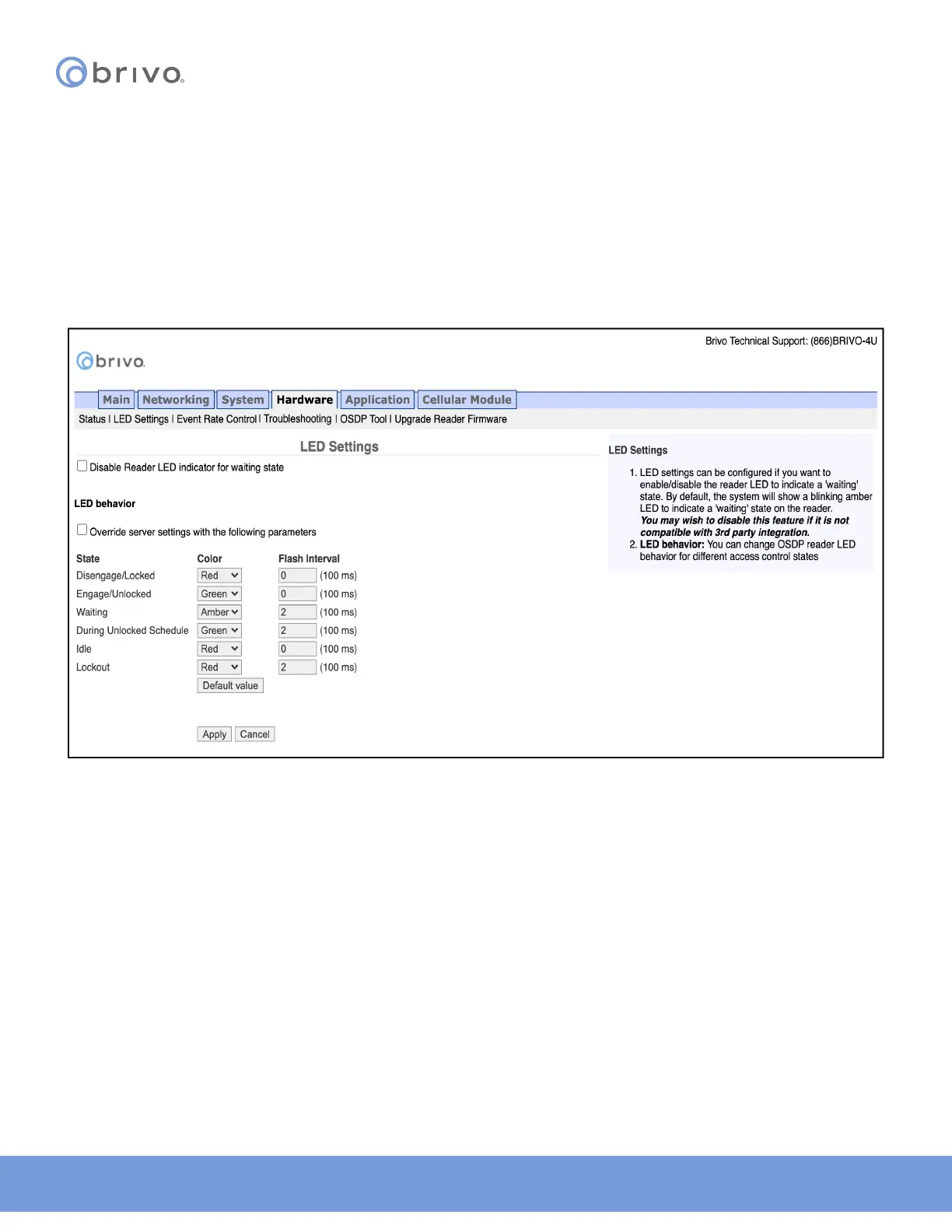can be congured if you want to enable/disable the reader LED to indicate a ‘waiting’ state. By default, the system