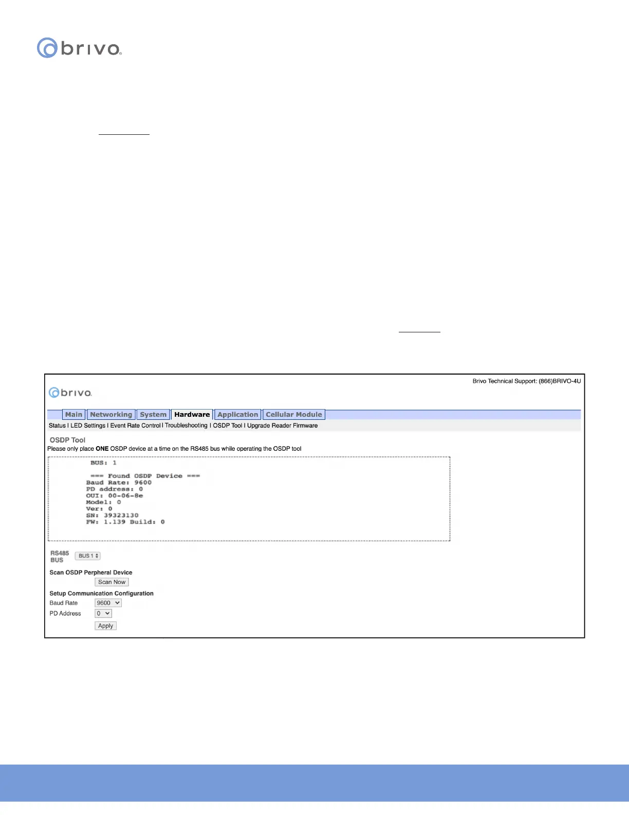 The OSDP Tool page allows the administrator to scan for OSDP peripheral devices attached to the control panel and