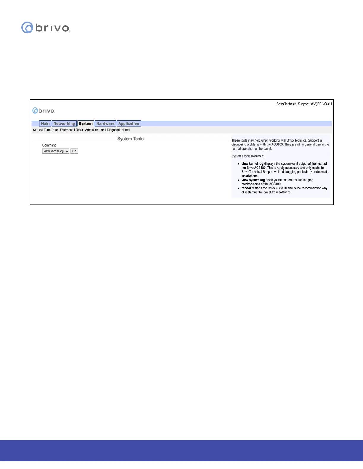 b. View System Log – this displays the contents of the various logging mechanisms in the control