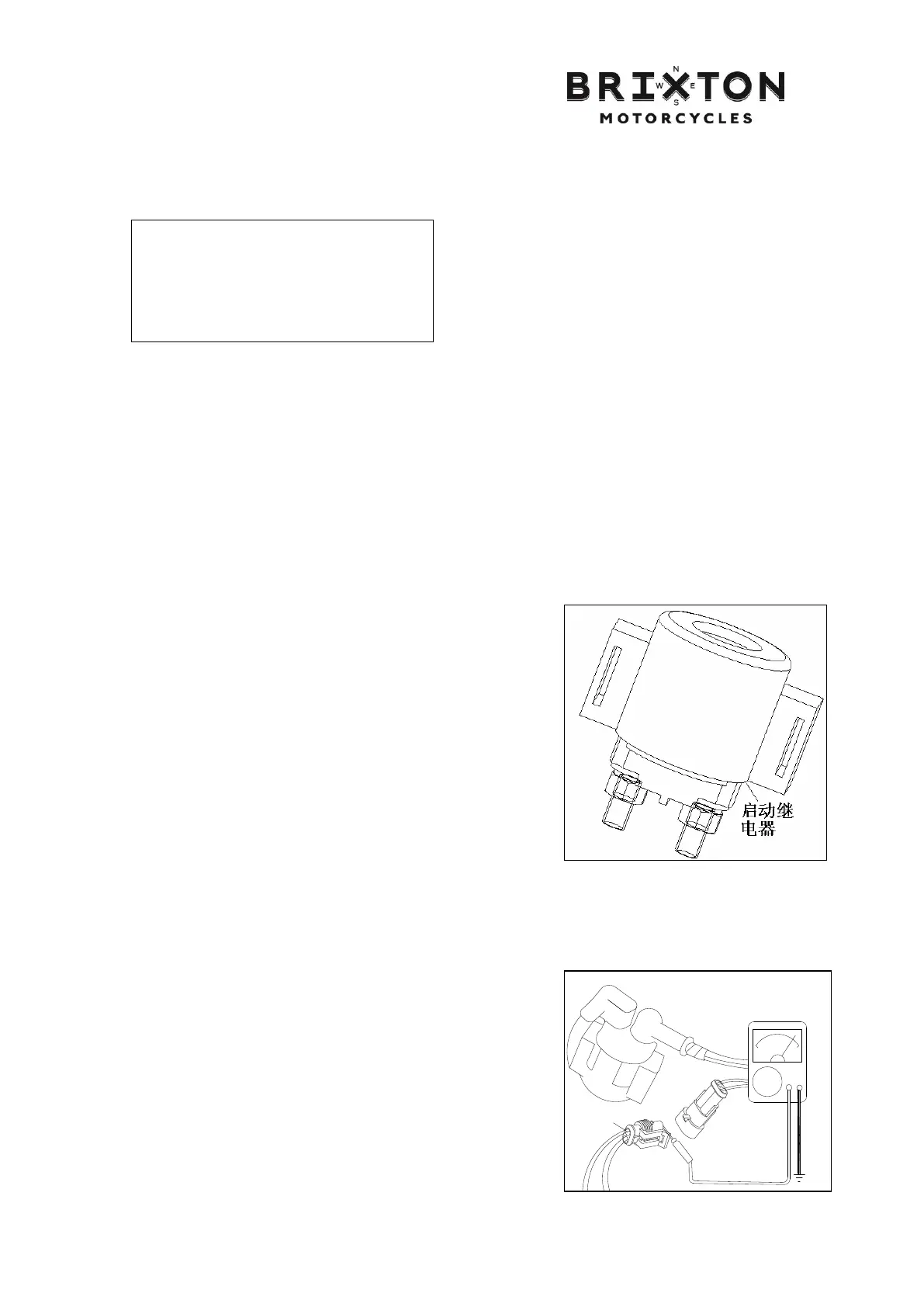 Lift and support the main stand. Measure the voltage
