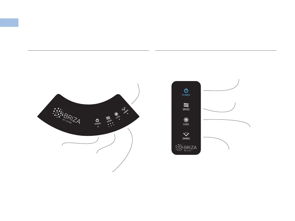 Briza BRZ01 - Control Panel and Remote; Control Panel Layout; Remote Control Functions