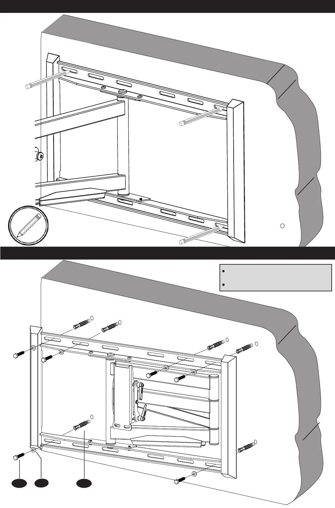STEP 3B – DRILL PILOT HOLES AND MOUNT WALL PLATE AND ARM ASSEMBLY