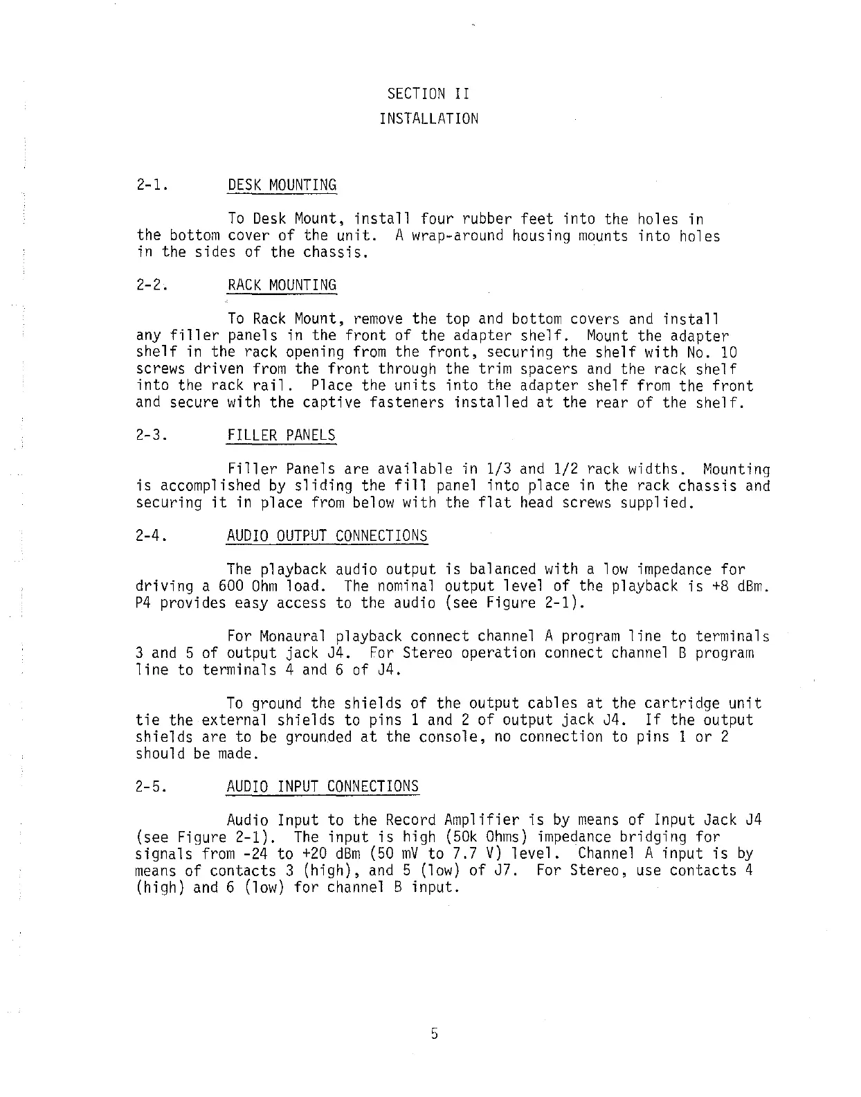 Broadcast Electronics 3000 Series - Installation; Desk Mounting; Rack Mounting; Filler Panels