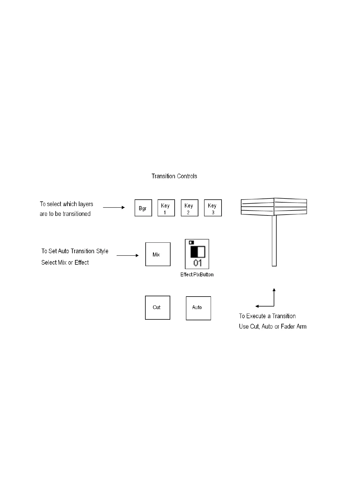 The transition section of the control panel manages all transitions. It is illustrated