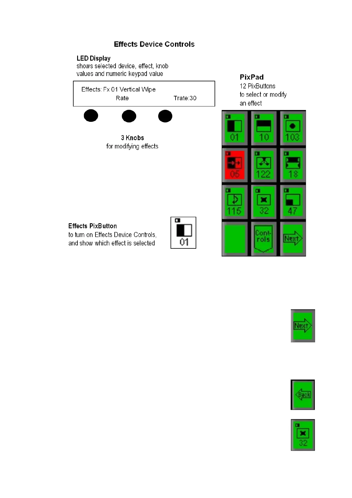 The Effects PixPad displays the first 9 effects, press the desired [Effect