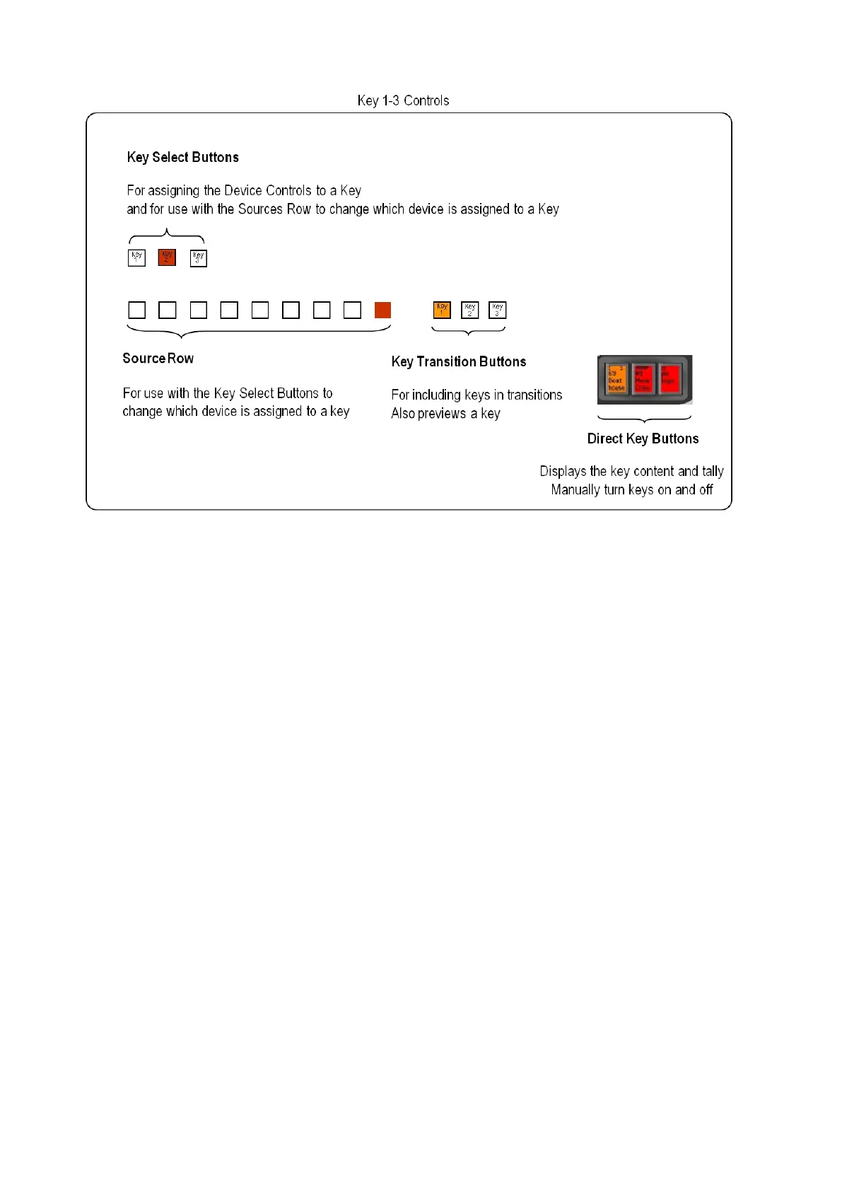 assigned to Key 1, 2 and 3 by using the Key Selection and Source Row controls