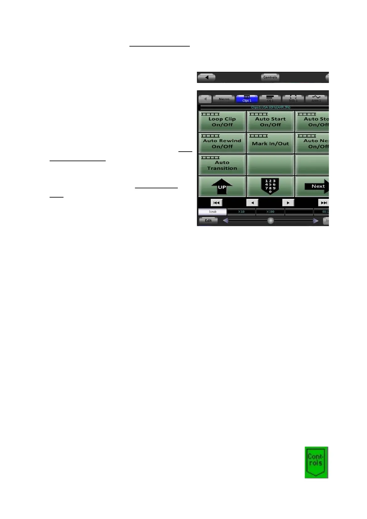 Start, Auto Stop, Auto Rewind, Auto Transition and Auto Next. When a clip is