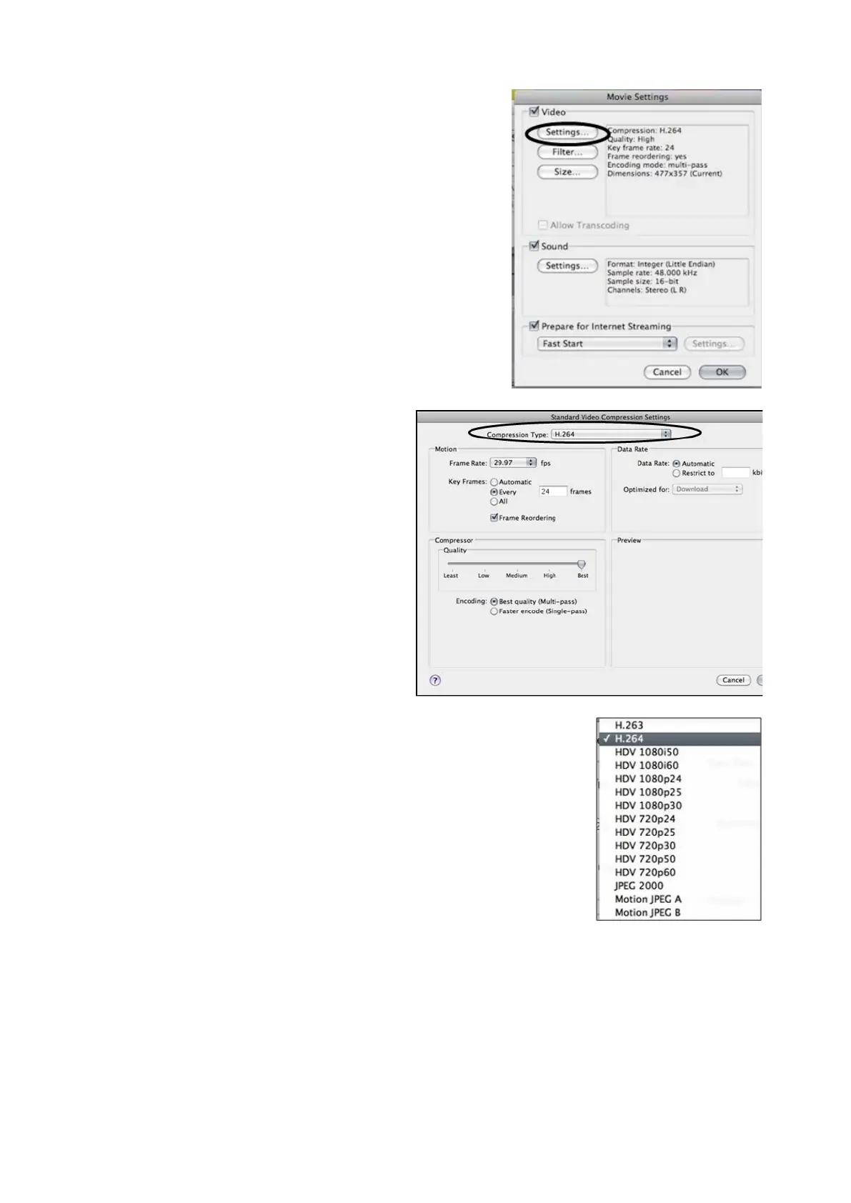 settings. Select H.264, ProRes