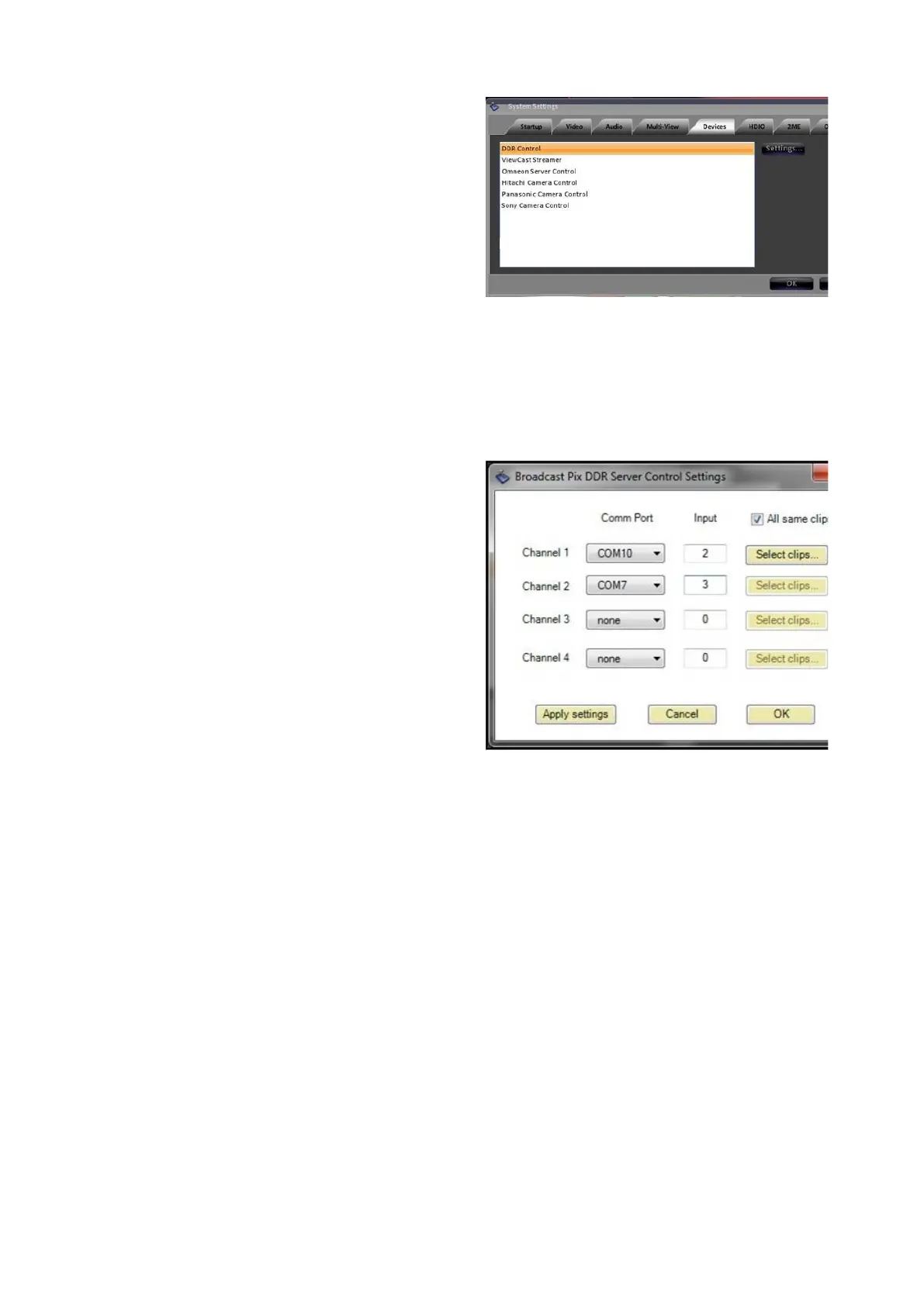 Note that the Select DDR Clips