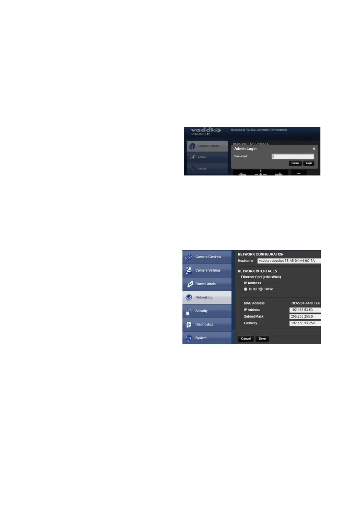 The Vaddio camera webpage will