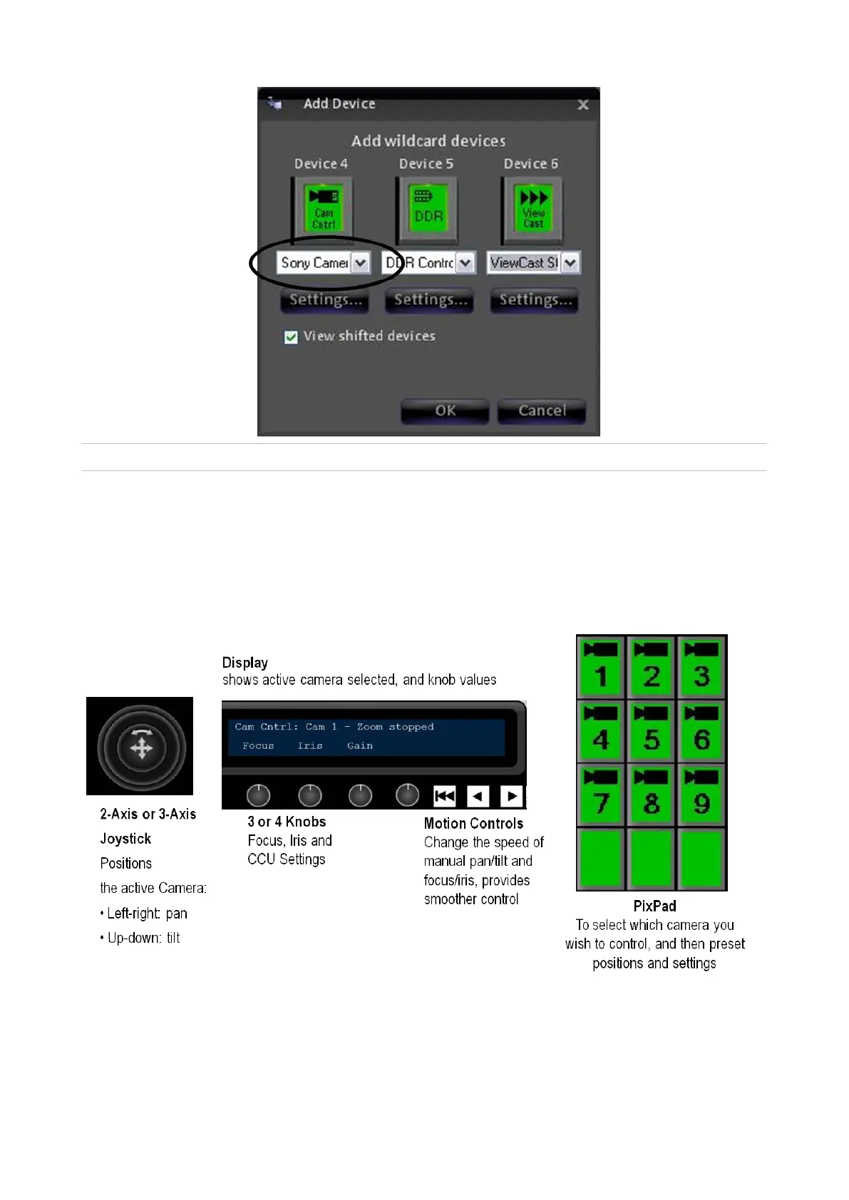 Press the assigned [Cam Cntrl] wildcard button in the Device Select (either