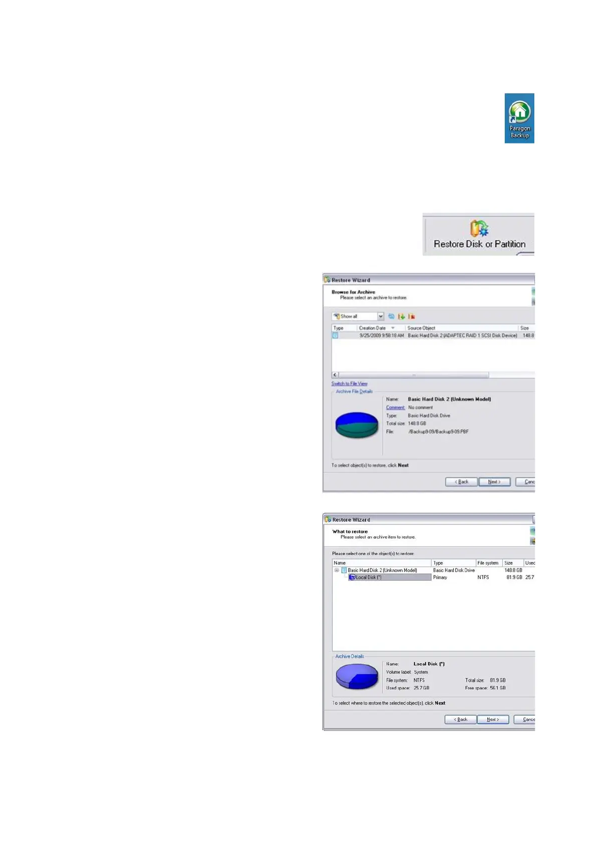 Restore Disk or Partition button, in