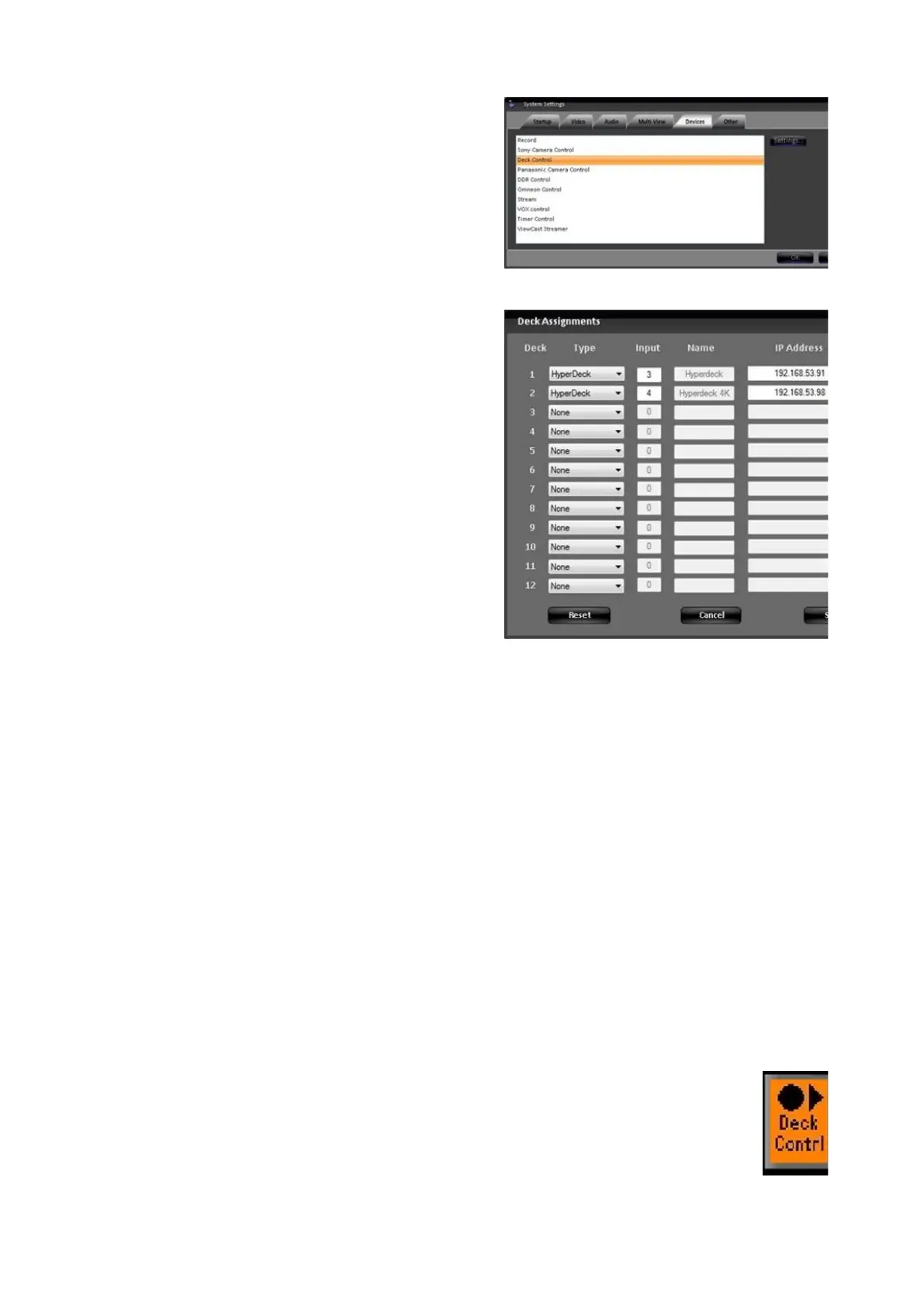 Enter the IP Address of each deck in the