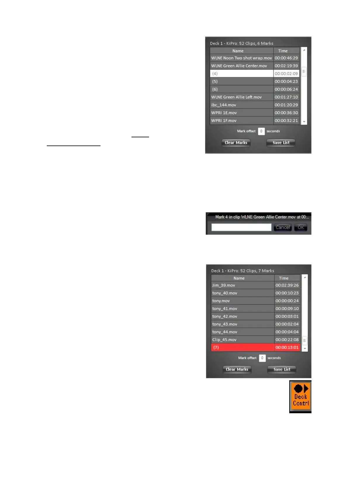 Note as clips and marks are selected