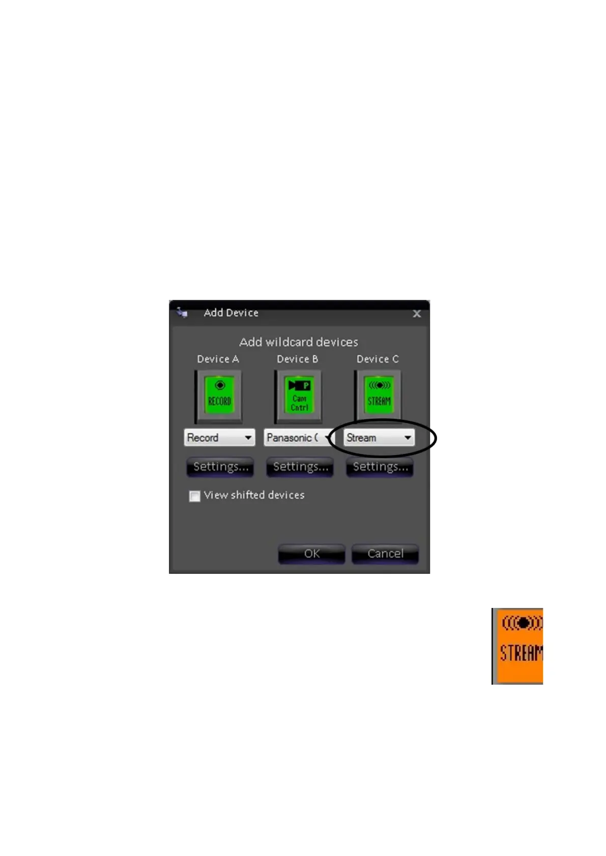 Press the [Stream] wildcard [Device Selection] PixButton and it will