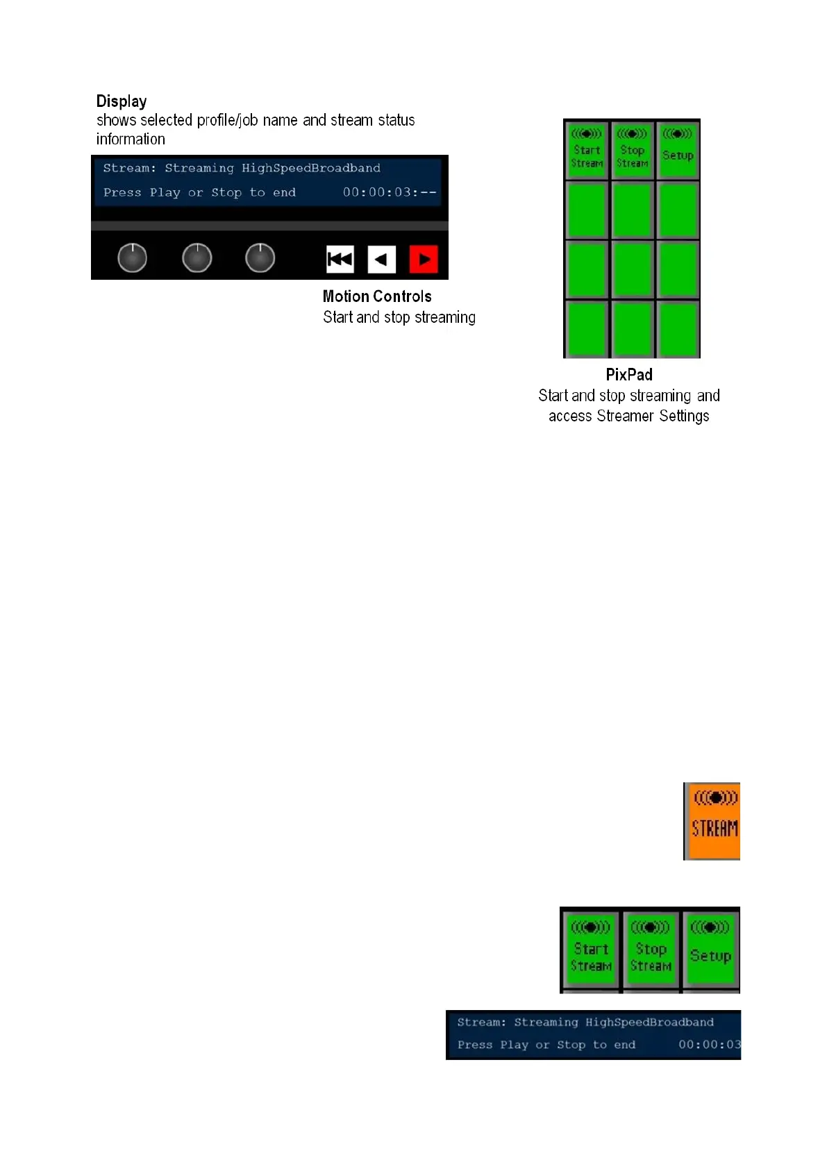 When you press the Stream Control PixButton, the active profile or job will appear.