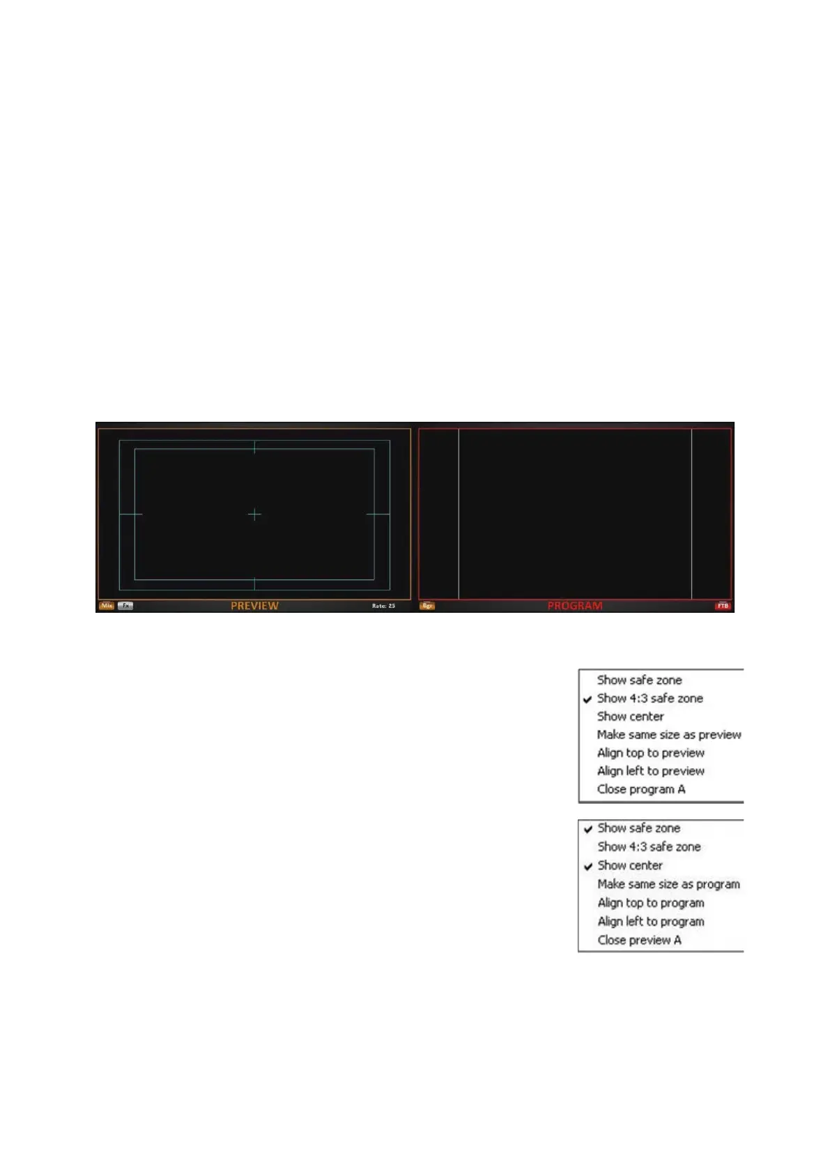 If desired, the Program and/or Preview monitors on the Multi-View may show safe